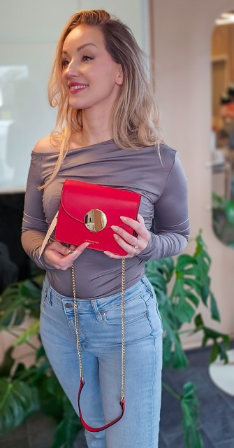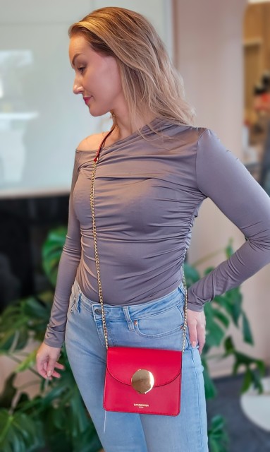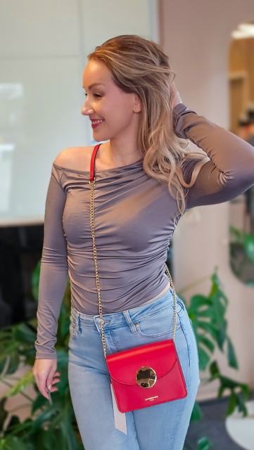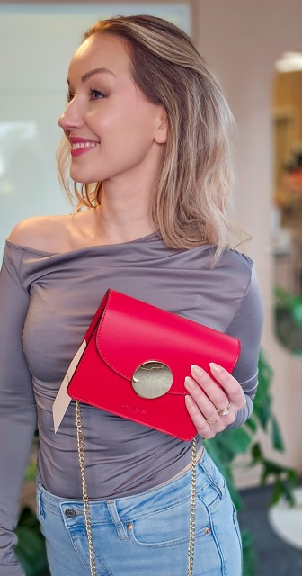 Vesken har en elegant sirkulær trykklåslukking med klaff, som tilfører et snev av vintage-sjarm, mens den kombinerte kjede- og lærskulderreimen gir et moderne preg. Gullfargede detaljer og tonale sømmer understreker veskens utsøkte håndverk og tidløse stil. Med en innvendig lomme som gir akkurat nok plass til dine små nødvendigheter, er Ondina både praktisk og sofistikert.