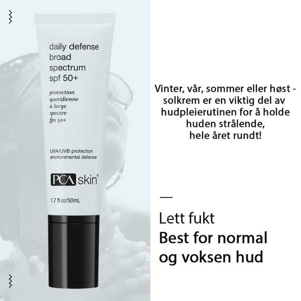 Forsvar huden mot UVA/UVB-stråler med denne kraftfulle solkremen med SPF 50+. Denne bredspektrede SPF har en fuktighetsgivende, kosmetisk elegant formel og ekstra aktive ingredienser for å beskytte huden mot skader av frie radikaler og reduserer slik skader på cellene og virker anti-aging. Den er ideell for de med normal til fet hud som trenger daglig fuktighet. Daily Defense erstatter Protecting Hydrator spf 30 med en enda tryggere formula for huden.